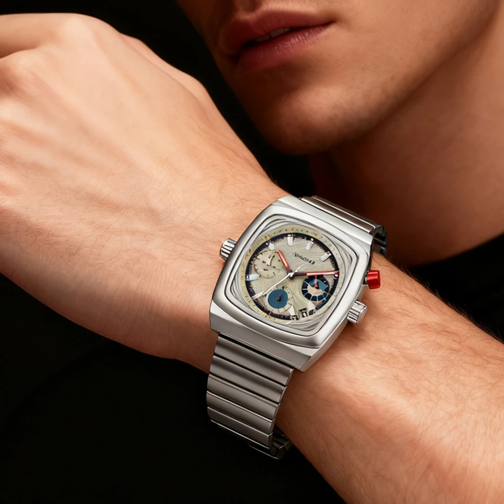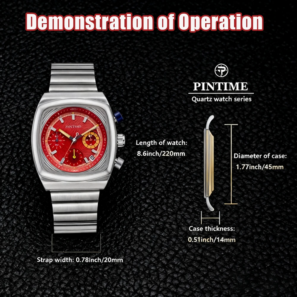 The PINTIME PT1520 is a powerful statement of vintage style and bold geometry. This quartz watch (battery included) commands attention with its striking large-diameter (45-49mm) square case and robust (14mm) profile. Constructed from alloy with a matching strap, the PT1520 is the perfect piece to combine vintage aesthetics with an unmistakable modern presence.