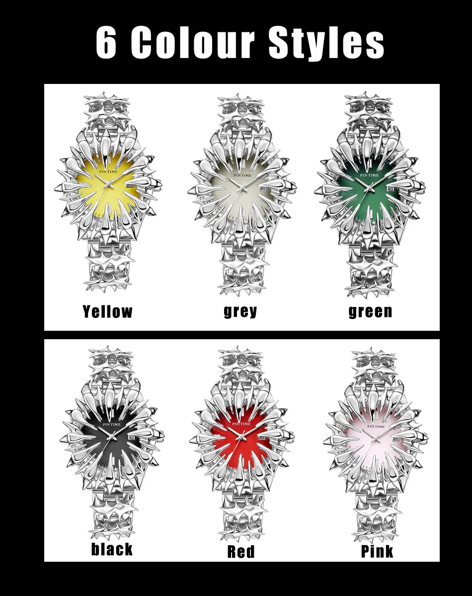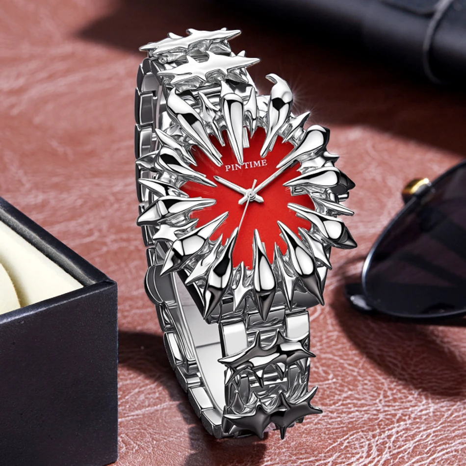 The PINTIME is the epitome of bold vintage style. This quartz watch (battery included) commands attention with its striking, irregularly shaped case and large diameter (45-49mm). Despite its vintage design, it's fully functional with a complete calendar and luminous hands and markers. Constructed from alloy with a Hardlex crystal, the PINTIME is the perfect piece for those seeking an accessory with a unique personality.