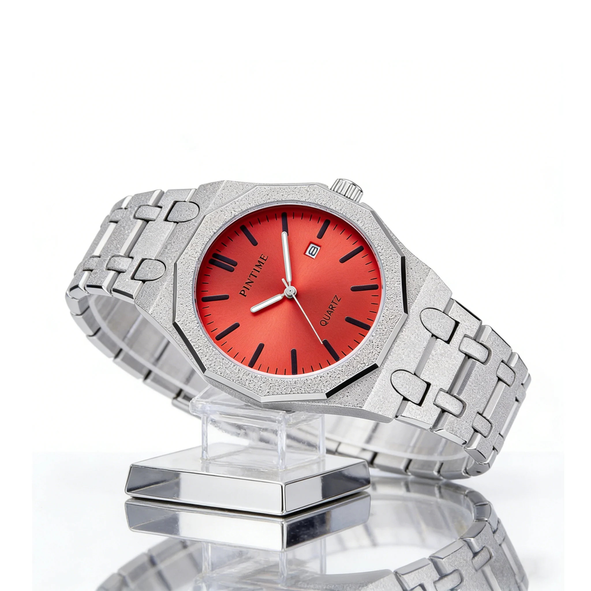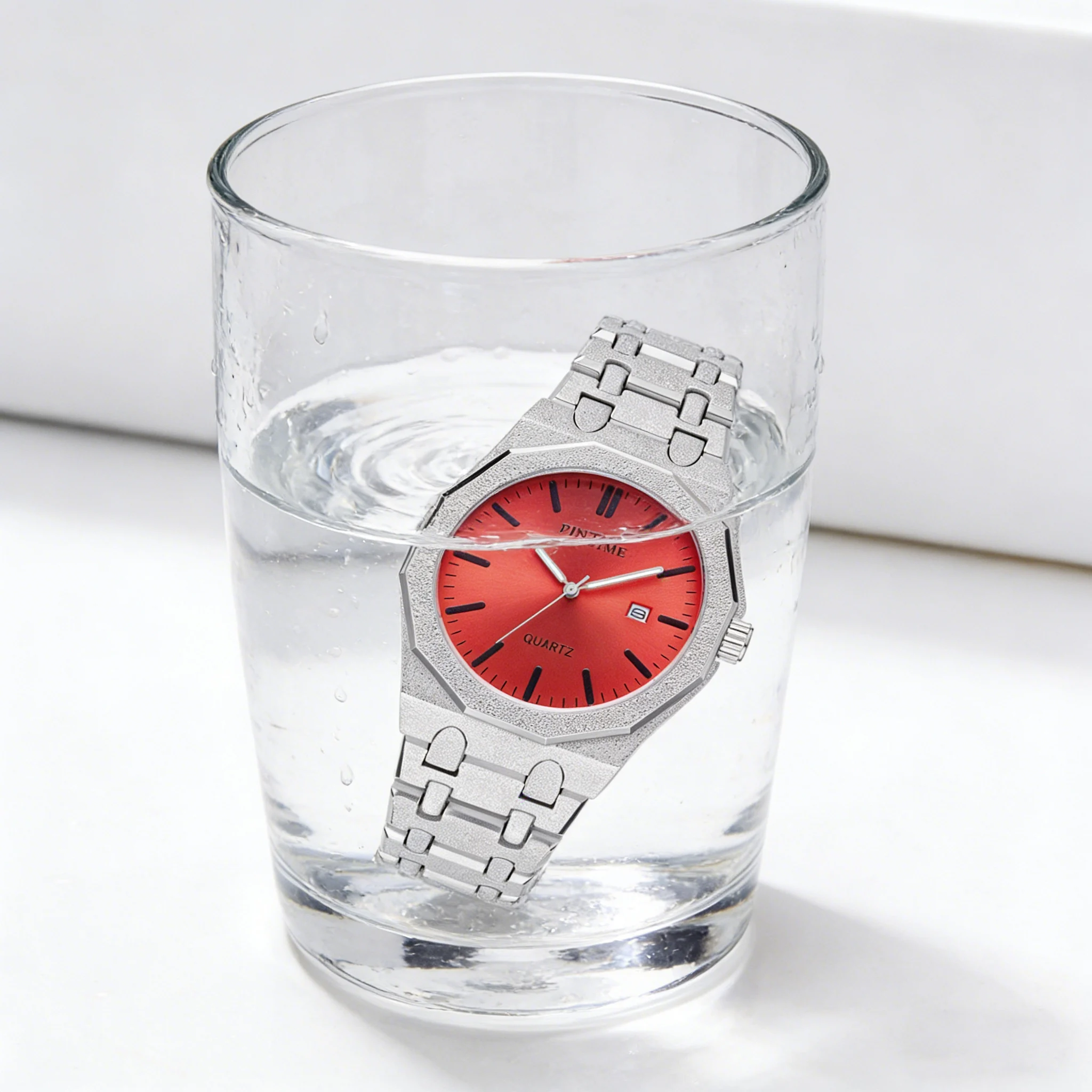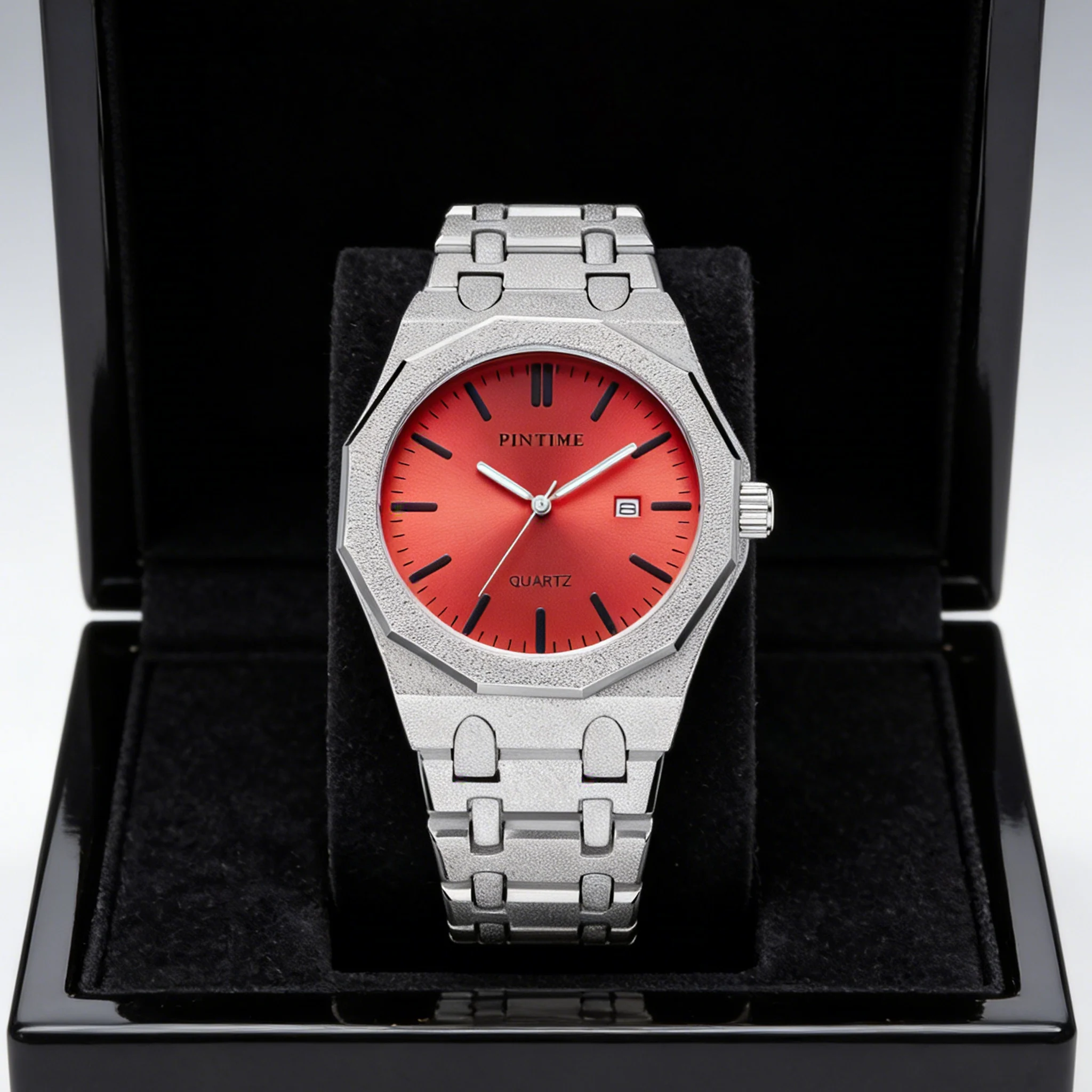 Highlight your style with the PINTIME watch, featuring a round design without numbers: modern, minimalist, and incredibly eye-catching. Constructed from a durable alloy with Hardlex crystal, a precise quartz movement, and an included battery, it offers a hidden snap closure for a sleek and secure finish. Water-resistant to 3 bar and perfect for everyday wear—a timepiece that combines presence, fashion, and personality with every glance.