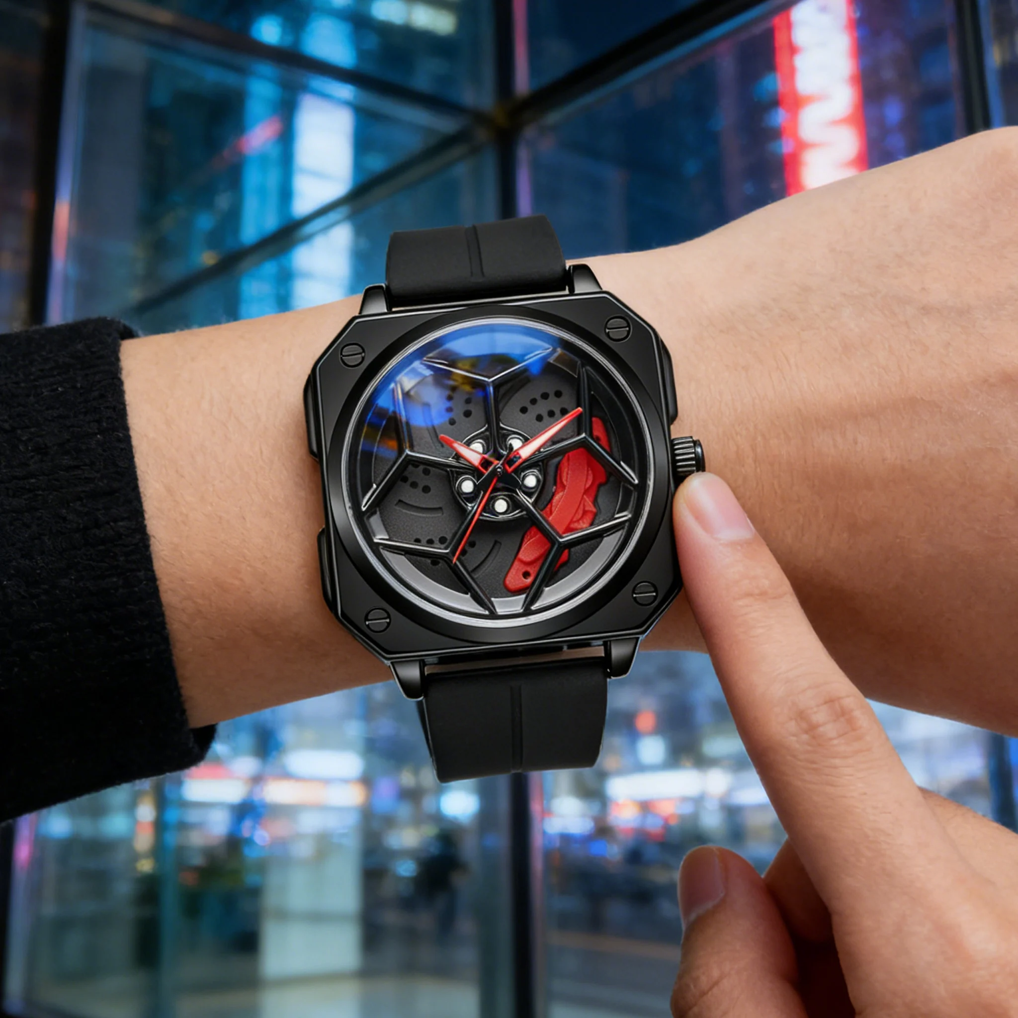- Modern square design with a rotating dial and no numbers: Makes a striking first impression and stands out from traditional watches.