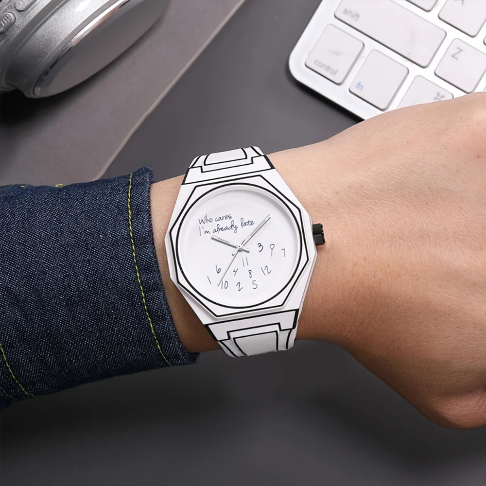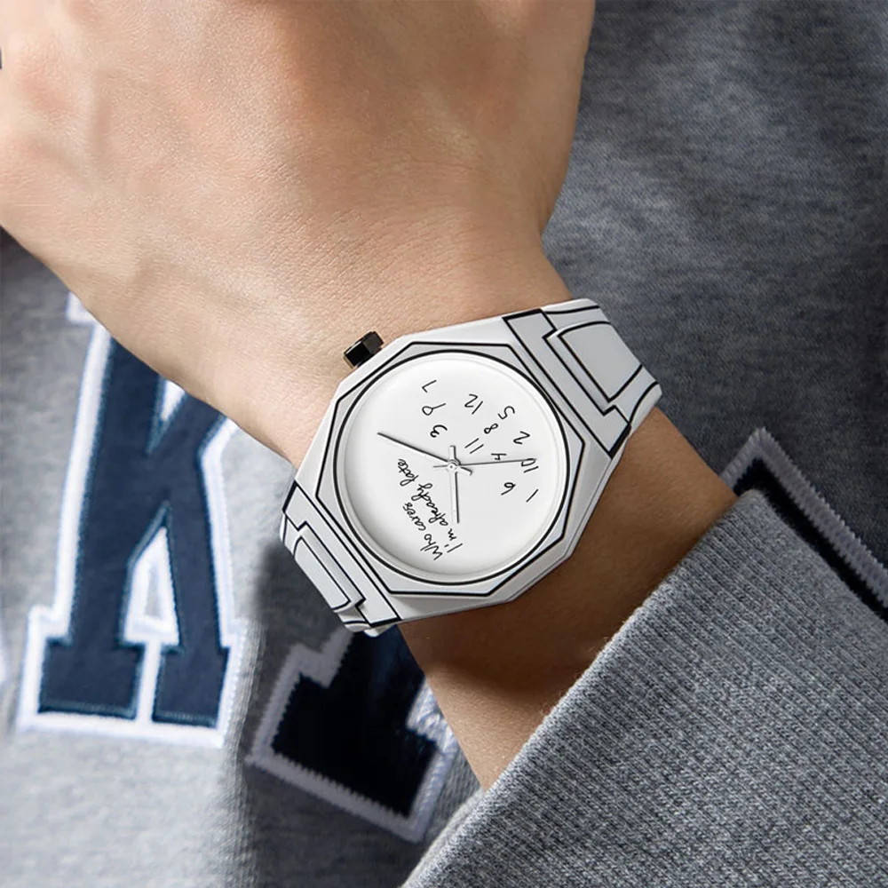 Large sport watch with easy-to-read Arabic numerals and a modern design. Comfortable silicone strap, precise quartz movement, and 3 Bar water resistance to accompany you through every activity. Lightweight, durable, and versatile: ideal for studying, sports, and everyday wear.