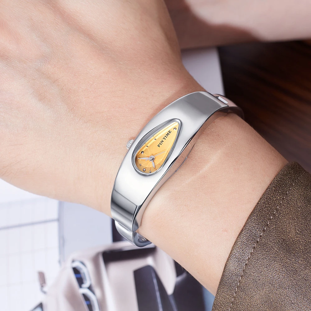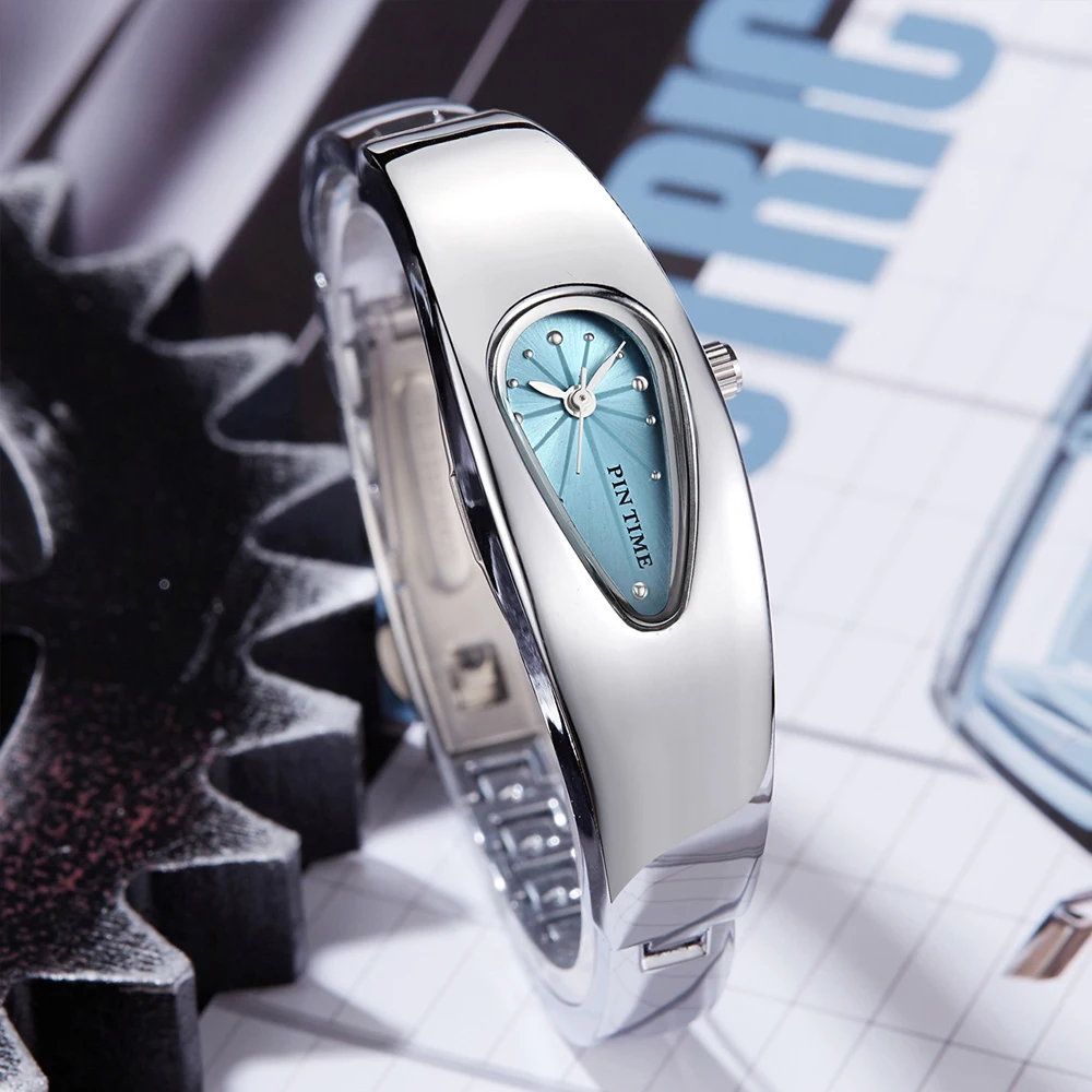A fashionable and casual watch with an irregularly shaped case that breaks with tradition and sets a new trend. Its dial, without numbers, slim profile, and hidden clasp add modern elegance. Precise quartz movement and 3 Bar water resistance make it the ideal accessory for those seeking a unique and daring style.